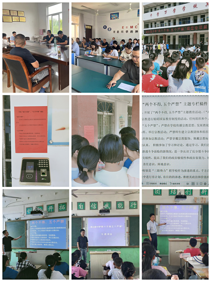 为坚决抵制和有效防范宗教和宗教极端思想向青少年渗透侵蚀,确保校园安全稳定与和谐发展,近期,周公渡中学开展了“两个不得,五个严禁”主题活动。
