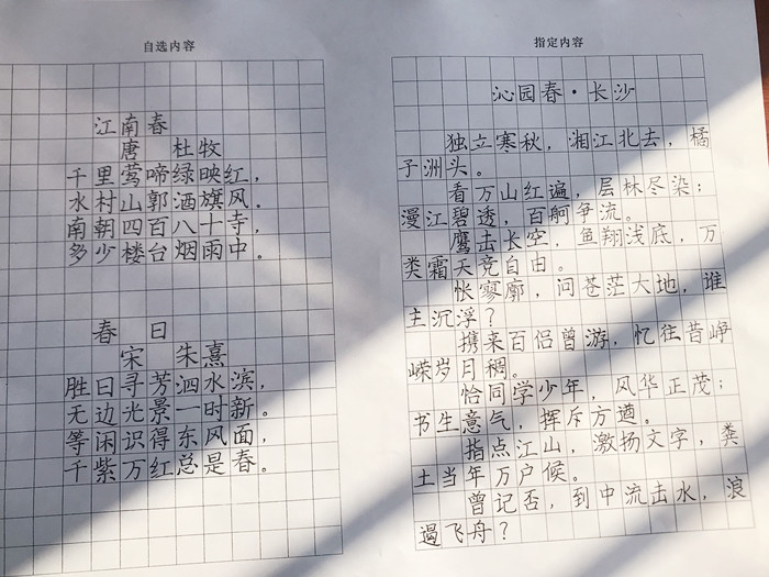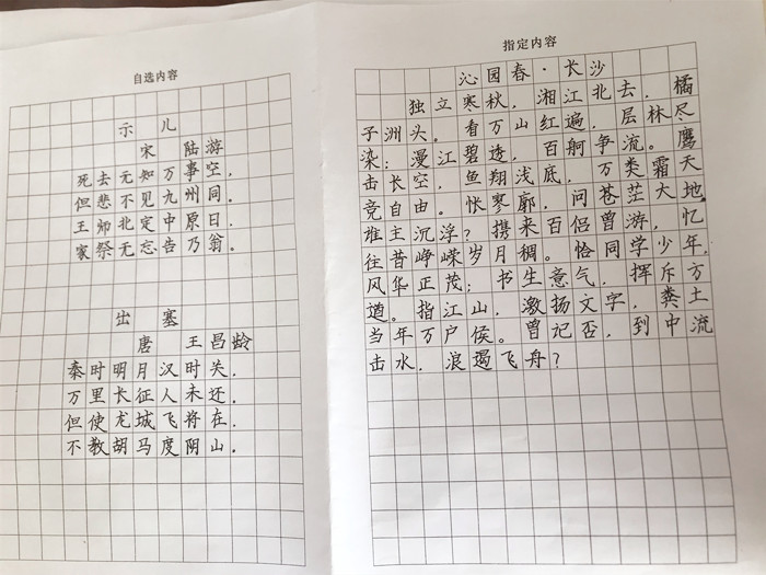 这次比赛的参赛对象为本校的3~6年级学生。比赛分钢笔字组和毛笔字组,各班级精挑细选了2名学生参赛。本次比赛均为现场书写,内容分为自选和指定两种形式。自选书写内容,由参赛选手围绕本次比赛目的自己确定(内容健康),可临写字帖;指定内容,由语文教研组在比赛时当场公布。参赛选手不得在赛场内使用手机搜寻范字。比赛须在规定时间内完成。参赛字体必须是规范的正楷(毛笔字可以写隶书),均不得书写繁体字。比赛中,同学们个个坐姿端正,静气凝神,用心展示,表现出良好的书写习惯。同学们的作品风采各异,有的端庄大气,有的苍劲有力,有的运笔秀巧,有的丰厚雍容。优秀的书法作品彰显着书法艺术的魅力,同时也树立了学生作为华夏子孙的文化自信。据悉,这次比赛学校将聘请专业老师担任评委,评出一、二、三等奖,对获奖同学颁发证书和奖品。