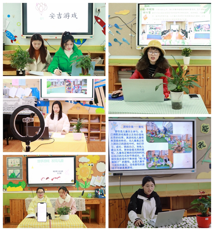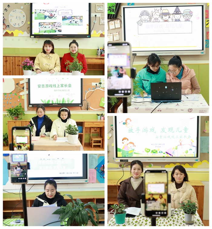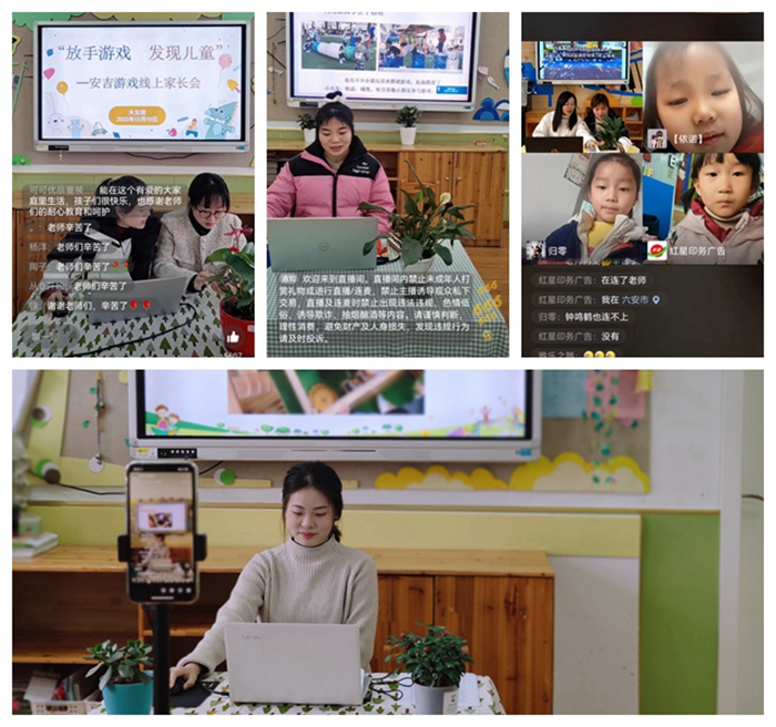 各班教师化身“主播”与家长们线上相约,围绕本学期班级情况、目前课程现状、安吉游戏开展情况及本学期保教重点、幼小衔接开展和家园配合等方面,从多个维度对幼儿在园的学习和生活情况与家长进行分享交流。
