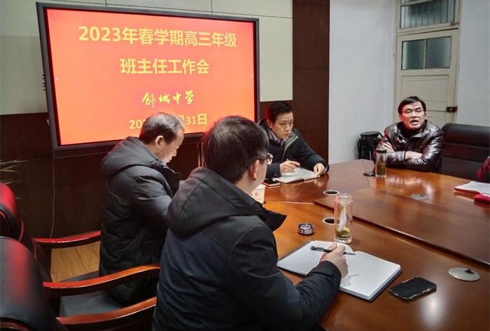 为进一步加强教育教学管理,有效促进高考备战,1月31日晚,舒城中学在行政楼三楼会议室召开2023届高三年级班主任工作会议。校领导李少云、孙发明、许国兵、陶善东以及高三年级全体班主任参加会议。会议由副校长陶善东主持。