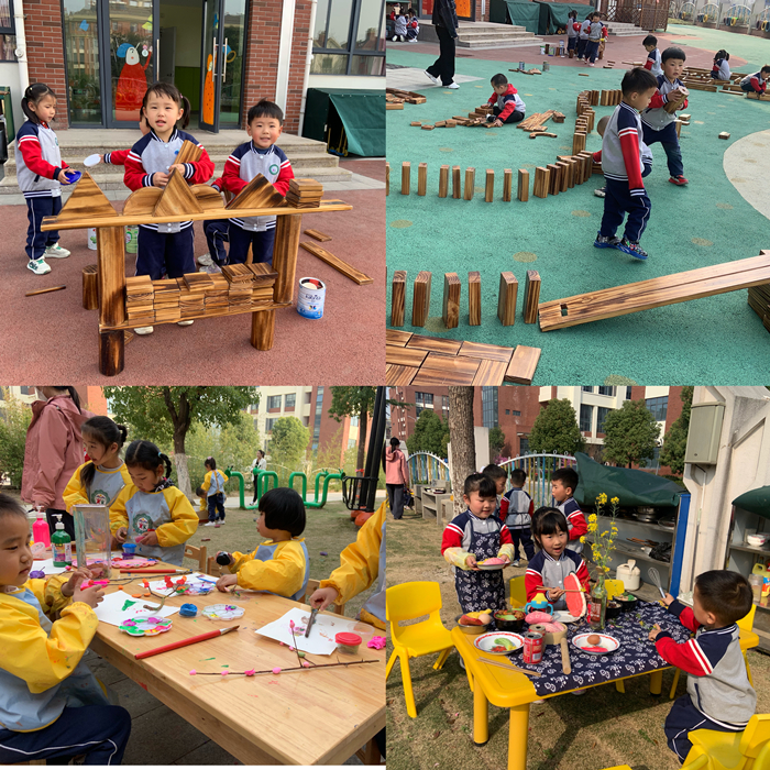 各班教师坚持以充分激发幼儿的自主性及创造性,依照《3-6岁儿童学习与发展指南》中强调的各年龄阶段幼儿发展特点及需求,给幼儿提供丰富的低结构材料进行游戏。