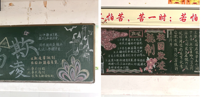 同时,学校还通过校园展板、召开主题班会、录制防欺凌宣传微视频、主题黑板报等形式,对学生开展形式多样的宣传教育活动。