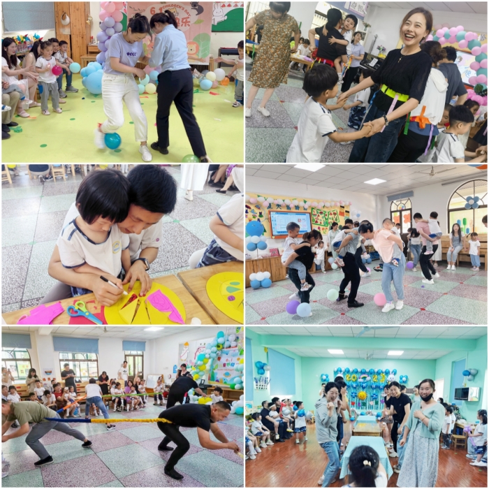 稍事休息后,各班邀请家长和孩子一起进行有趣的亲子游戏,爆破气球比赛、夹乒乓球比赛、小小领路人、击鼓传球等,大小朋友都积极参与到活动中,从中体验亲子游戏的快乐。有效的增进了亲子关系,涵养好家风家教,促进家庭文明新风尚,弘扬中华传统文化。