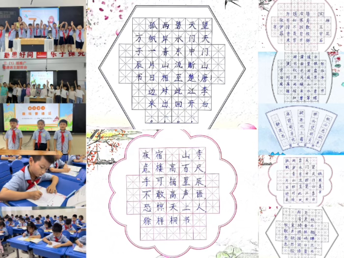 一字一音,一腔一调,各班还通过语文阅读课进行朗诵、讲故事、趣味普通话等活动,让经典滋润孩子们的心田,让普通话伴着孩子们成长,使优美语言溢满校园。 学生们精神饱满、热情洋溢,他们用真挚的感情,歌颂祖国、歌颂党,营造一种良好的语言环境。