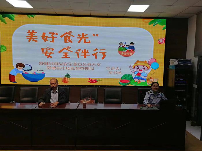舒城县人民医院儿科宣讲员彭志平以《儿童意外伤害预防及急救》为题,结合图片联系生活实际,通过生动的讲解提升了学生自我保护意识;舒城县食品安全委员会办公室胡书咏以《美好“食光”,安全伴行》为题,从“节约粮食,光盘行动”和“提高食品安全意识”两个方面向学生进行了宣讲。