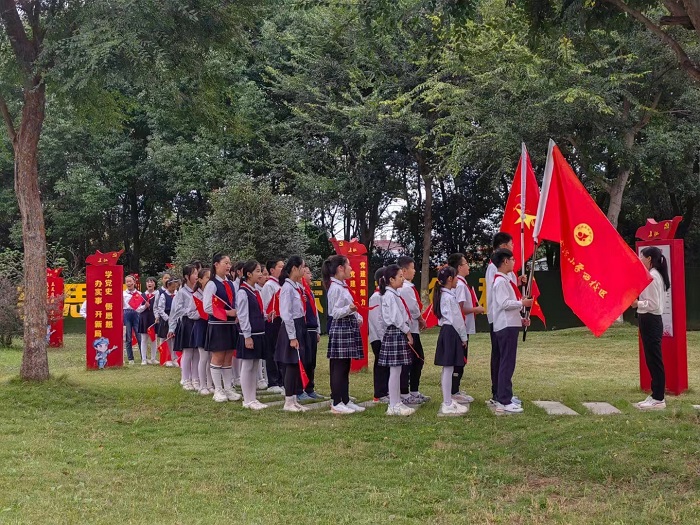 活动开始,少先队员在讲解员的带领下参观了“重走长征路”主题公园,县委党校胡文娟老师为同学们讲解了“长征精神”,回顾了党史,同学们深受鼓舞,学生代表时梓轩由衷感慨:“清澈的爱,只为中国!”他带领所有队员宣誓:“请党放心,强国有我!”