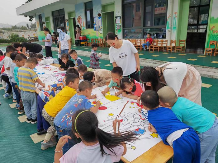 舒茶镇龙王庙幼儿园开展“手绘童心 我与祖国共成长”庆国庆主题活动