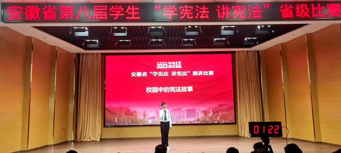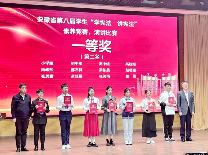 10月13日,由中共安徽省委教育工委、安徽省教育厅主办,教育部全国青少年普法网协办的“安徽省第八届学生‘学宪法 讲宪法’省级比赛”在巢湖学院举行,代表六安市参赛的舒城二中学生邵石梓荣获初中组演讲比赛省级一等奖。该成绩创造了我县学生在该赛事上的最高奖项。