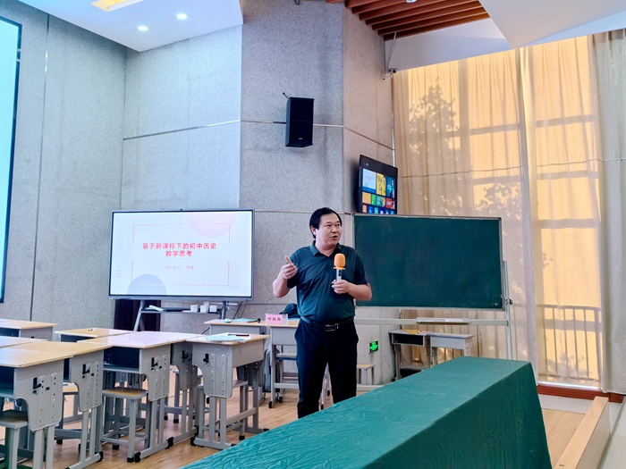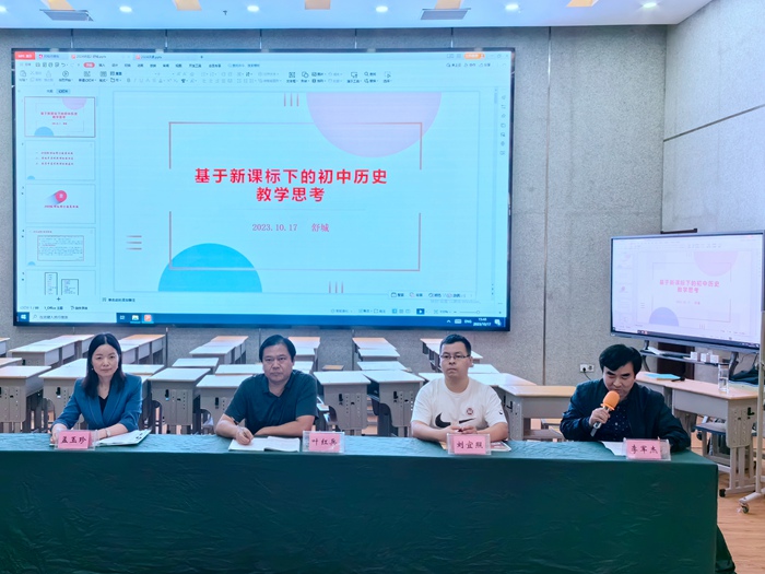 课后,由区历史兼职教研员、合肥市育英中学校长叶红兵对两位老师的公开课进行点评,并就《基于新课标下初中历史教学的几点思考》开展专题讲座。叶校长的讲座分为“2022年新课标修订的再回顾”“安徽中考对新课标的回应”“教学中落实新课标的建议”三个部分。讲座高屋建瓴、旁征博引,既有教学实例的点拨,又有中考真题的剖析,贴近教学实际,给出教学建议。整个活动教学研讨积极,得到与会教师们的高度赞誉。