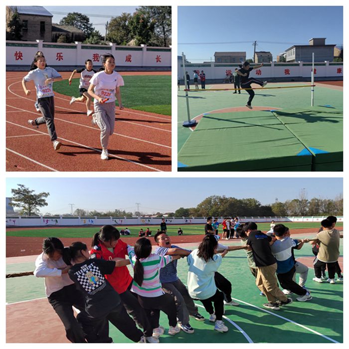活动中,各项竞赛项目有序开展,本次运动会包括广播体操、拔河、跳高、长跑、短跑、实心球、立定跳远、一分钟跳绳等比赛项目。赛场上随处可见运动员们参加各项比赛的矫健身姿,他们用拼搏的精神和昂扬的斗志诠释了该校学生敢于争先,勇于争先的精神风貌。赛道外,师生们加油、呐喊、助威的声音一阵高过一阵,将本次运动会推向了高潮。