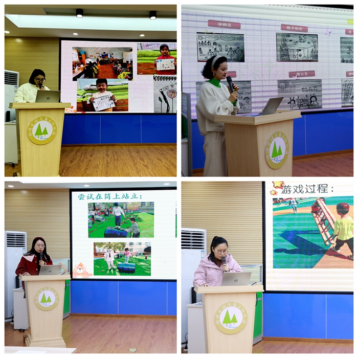 游戏案例分享活动中,老师们立足幼儿真实的游戏,运用视频记录、PPT展示汇报、文字解读等形式,通过解读与分析,还原幼儿在游戏过程中的所思所想,分析解读记录幼儿成长的痕迹,生动形象地再现了孩子们在游戏过程中的具体表现。让在场的老师们真切感受到了每一场游戏都是一个精彩动人的故事,每一位幼儿在游戏中都有自己的闪光点。