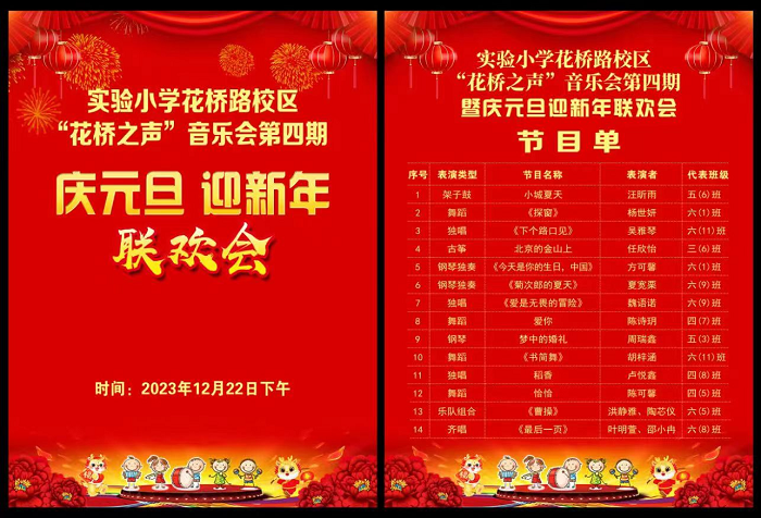 新年新岁新气象,向前向上向未来!12月22日,实验小学花桥路校区举办了“花桥之声”第四期音乐会暨庆元旦迎新年联欢会。