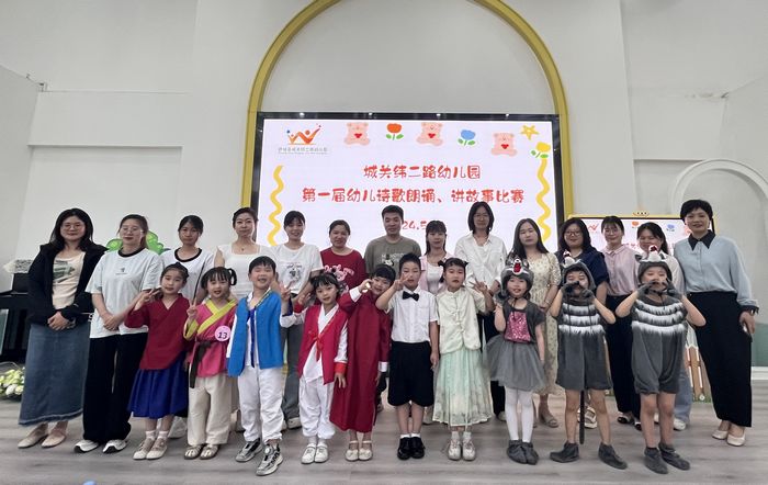 《3-6岁儿童学习与发展指南》中强调:“发展幼儿语言关键期是创设一个想说、敢说、喜欢说、有机会说的环境”。为了发展幼儿的语言表达能力,增强幼儿的表演能力和自信心,5月24日上午,城关纬二路幼儿园开展了第一届诗歌朗诵、讲故事比赛。