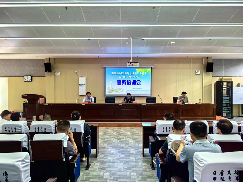 6月17日上午,2024年安徽省八年级学业水平考试舒城一中考点考务培训会在艺术楼小报告厅召开。考点主考、监考员、纪检员等参加会议。培训会由考点副主考张勇主持。