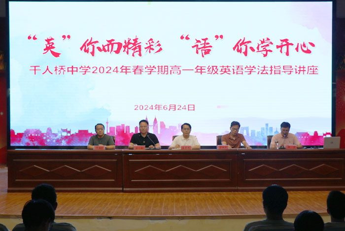 为进一步提升学生英语学习热情,指导学生形成实用的学习策略,6月24日晚,千人桥中学高一年级部特邀高一年级英语备课组长方敏牛老师在校报告厅为高一年级学生进行英语学科学法指导讲座。本次活动由高一年级部副主任薛建主持,校长王克胜、高一年级部主任王林、高一年级全体同学参加。