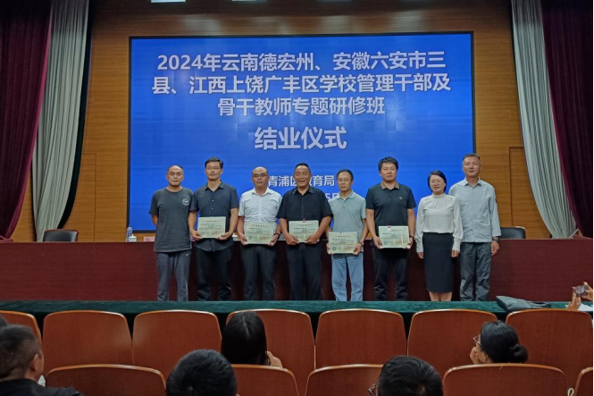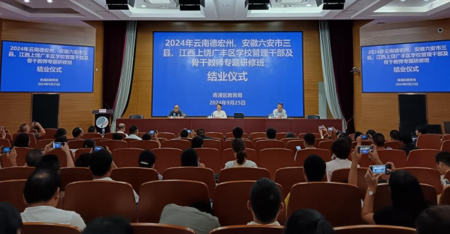 9月26日下午,2024年云南德宏州、安徽六安市三县、江西上饶广丰区学校管理干部及骨干教师专题研修班结业仪式在青浦区教师进修学院举行。我县学员参加了结业仪式。青浦区教育局对本次研修活动进行了总结,对研修成果给予了肯定,并对学员们提出了希望。仪式中,青浦区教师进修学院给学员们颁发了结业证书。