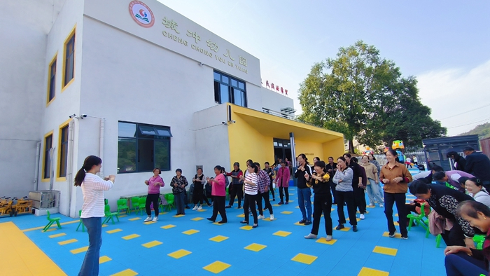 为使活动顺利举行,园长妈妈和老师们制定了周密的活动计划,安排了有趣的游戏,提前准备了美味的茶点水果,布置好了温馨舒适的活动场地,诚挚地邀请孩子们的爷爷奶奶和外公外婆于重阳节当天来园参加有趣又温馨的亲子活动。下午两点半,所有人都聚集在幼儿园门前宽阔的活动场地,伴随着欢快的音乐,主持人热情欢迎了各位家长的到来,并宣布亲子活动正式开始。园长妈妈带领家长们学做健身操,这既是暖场活动,也是对家长们身体健康的祝福,气氛瞬间就活跃起来了;家长们又进行了赶鸡入笼、翻花绳和抢杯子的趣味游戏,大家都积极参与,其乐融融;大班的小朋友们带来了《中华孝道》表演,向爷爷奶奶外公外婆表达了最真挚的感恩与祝福;最后,孩子们为爷爷奶奶外公外婆献上了一条红色围巾,并热情地拥抱他们,这是整场活动中最温馨的一幕,温暖了在场所有人的心!