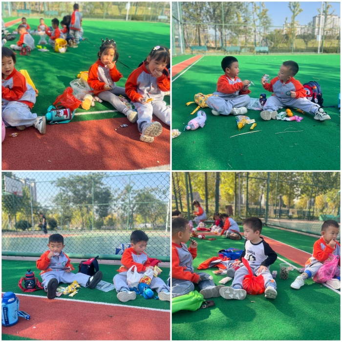 出发之前,各班教师和孩子们一起在班级内讨论了秋游的注意事项、做好秋游前的安全准备。到达目的地后,孩子们边走边看,认真聆听老师的讲解,欣赏秋天的美景,观察大自然的变化。在探秘大自然的同时,老师们还精心准备了各种游戏,孩子们在开阔的场地中奔跑跳跃,享受着游戏带来的快乐,为美丽的秋景增添了一抹灵动的色彩。野餐时间,孩子们分享着自己的美食,也互相分享着快乐与美好!野餐结束后,孩子们一起收拾整理垃圾,分工合作、互相帮助,争做环保小达人。