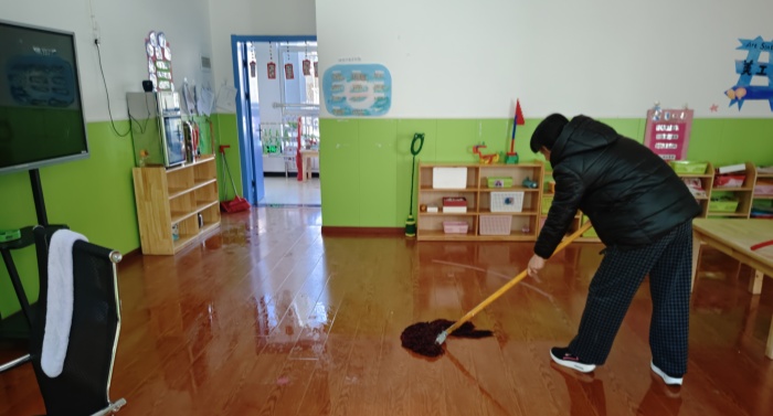 一沉不染,辞旧迎新——张母桥镇长冲幼儿园开展期末卫生大扫除活动
