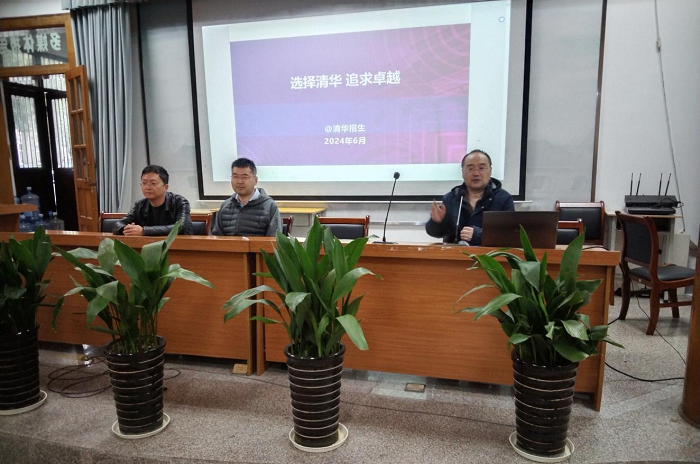 陶善东副校长隆重介绍了几位嘉宾并致欢迎词。随后陈超组长向三个年级的尖子班同学全面介绍了清华大学的校史、科研、学术氛围、招生录取等,陈组长浅显易懂的介绍让同学们对清华大学有了更深入的了解,更坚定了上清华大学的决心。