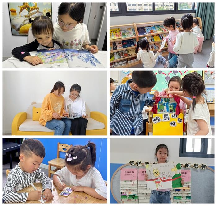 各班教师通过绘本故事、多媒体课件等多样化形式,向幼儿生动讲解世界读书日的起源。在寓教于乐的集体活动中,孩子们不仅认识了读书日的由来,更深刻体会到阅读的重要意义。在欢快的阅读节拍中,小班幼儿与父母一同徜徉于书海的奇妙世界,亲子共读的温馨时光里,知识的种子在欢声笑语中悄然萌芽,爱与智慧在书页翻动间静静流淌。这段美好的悦读之旅,不仅滋养了幼小的心灵,更编织出家庭最珍贵的记忆锦缎。小小书签,承载阅读的喜悦,记录成长的足迹,中班孩子们用巧手绘制以创意装点,制作出各具特色的个性书签。这些充满童趣的创意书签,不仅寄托着对书籍的热爱,更展现了孩子们天马行空的想象力,让阅读的时光更加生动有趣。大班幼儿根据生活经验和对故事的理解,大胆想象、设计,通过故事绘画的形式,再现、创编故事,制作出一本本有趣的绘本故事书。阅读是教师成长的必由之路,为促进教师读书智慧的碰撞,提高教师的教育理论水平和文化素养,引导教师养成“爱读书、会读书、读好书”的习惯,营造良好的阅读氛围。