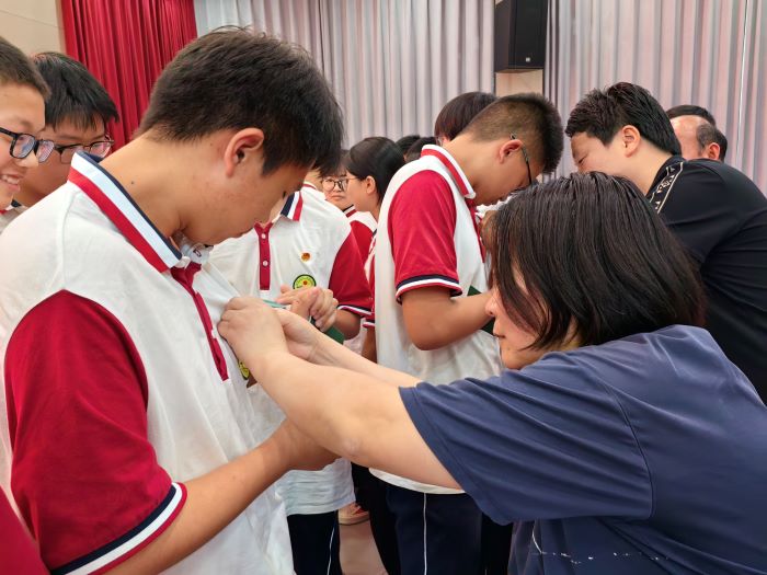 入团仪式在庄严的国歌声中拉开帷幕,全体师生肃立,齐唱国歌,现场气氛庄严肃穆。紧接着,校党支部副书记沈晓君宣读了新团员名单,该校46名同学光荣地加入中国共产主义青年团。校领导们郑重地为新团员佩戴团徽,一枚枚团徽在胸前闪耀,不仅承载着共青团的光荣,更寄托着对新团员的殷切期望。