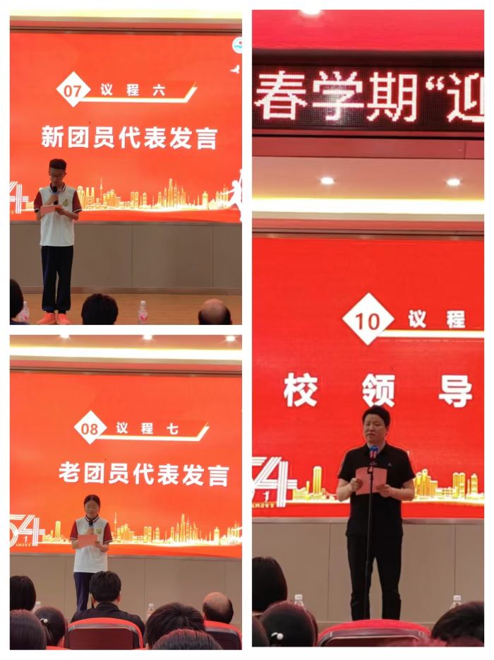 新团员代表盛昊翔同学发表感言,他表达了加入共青团的自豪与激动之情,并承诺将以团员标准严格要求自己,努力学习,积极进取,用实际行动践行入团誓言。老团员代表吴雅婷同学也分享了自己的成长感悟,鼓励新团员在团组织中不断锤炼自我,发挥模范带头作用。