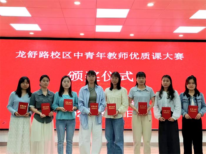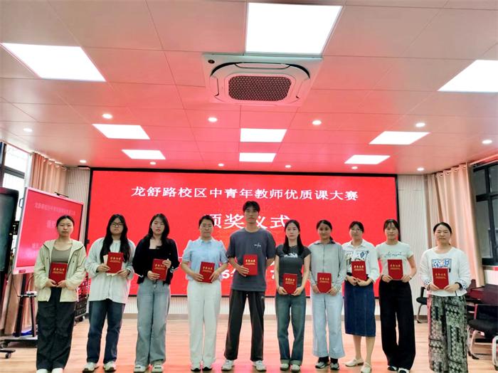 活动中,获得学校“中青年教师优质课大赛”一等奖的五位教师依次登台展示,以精湛的教学技艺和独特的教学风格,为全校教师呈现了一场场精彩纷呈的视听盛宴。在语文课堂上,王海云老师执教的《海底世界》宛如一场奇幻的海底之旅。她以细腻的情感引导、灵动的教学语言,带领学生走进文本深处,感受文字的魅力。数学课堂上,江明洁老师执教的《[比一比》则充分展现了数学的严谨与逻辑之美。她以生动有趣的实例导入新课,将抽象的数学知识转化为贴近学生生活的实际问题,让学生在解决问题的过程中轻松掌握知识要点。英语课堂上,汪丽老师以一口流利标准的英语、丰富多样的教学手段,为学生营造了一个沉浸式的英语学习环境。她通过歌曲、游戏、角色扮演等多种形式,激发学生的学习兴趣,让学生在轻松愉快的氛围中学习英语知识、提高英语表达能力。美术课上,王军霞老师执教的《别致的小花瓶》带领学生探索陶艺与装饰艺术的魅力,学习运用泥塑成型、镂空雕刻、彩绘点缀等技法,设计出兼具实用性与艺术性的小花瓶。体育课上,汤娜娜老师以“快乐运动,健康成长”为理念,通过趣味游戏与基础运动技能训练相结合的方式,激发学生的运动兴趣,增强体质,培养团队协作精神。精品课展示活动结束后,在校多功能厅举行“龙舒路校区中青年教师优质课大赛”获奖选手颁奖仪式,校领导分别为大赛获奖教师颁发获奖证书,大家高兴地合影留念。