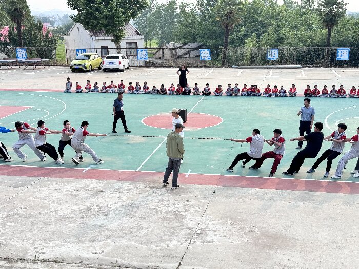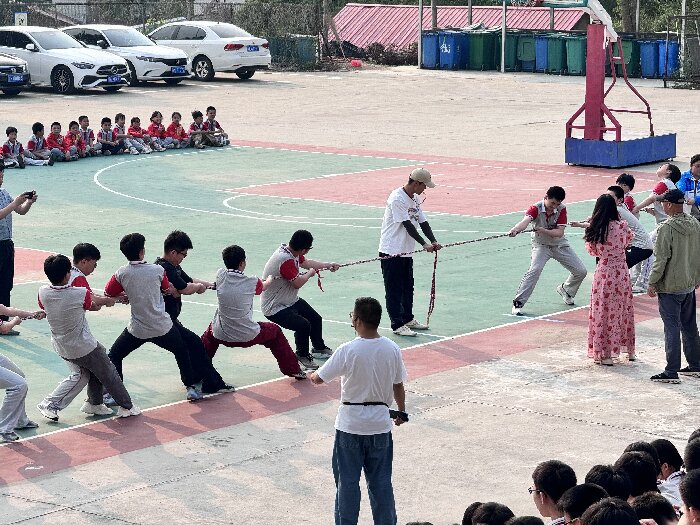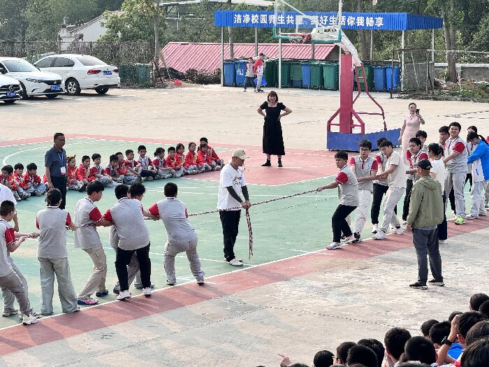 为丰富学生课余生活,增强班级凝聚力,5月25日,我校在校篮球场举行了一场充满激情与活力的拔河比赛,八、九年级踊跃参与,上演了一场力量与团结的精彩对决。