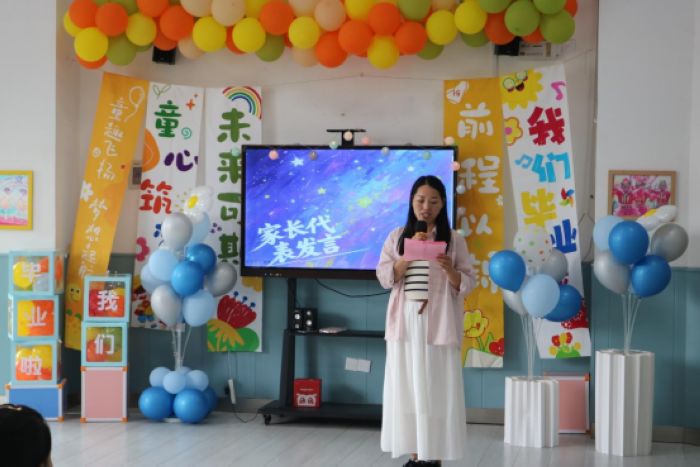 典礼在主持人深情的开场白中拉开了序幕,屏幕上播放了孩子们在园生活的精彩瞬间,从初入园的懵懂到如今的自信满满,每一个画面都记录着孩子们的成长轨迹。幼儿代表与家长代表相继发言,表达了对幼儿园、老师及小伙伴们的感激之情,以及对未来的美好期许。孩子们还用精彩的节目展示了在园期间学到的才艺与技能,赢得了阵阵掌声与喝彩。