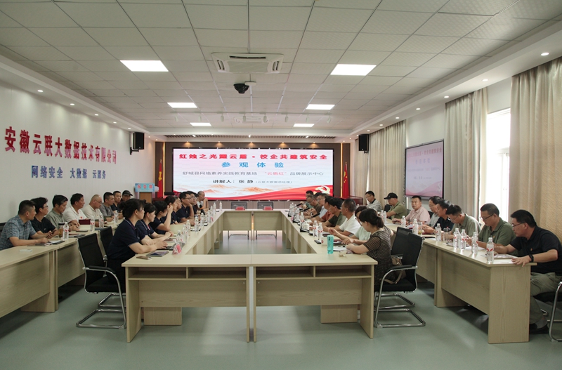 为深入贯彻落实总体国家安全观,强化党员干部网络安全意识,8月8日下午,舒城一中党总支与安徽云联大数据技术有限公司党支部在舒城县网络素养实践教育基地联合开展“云烛护光”主题党日共建活动,以党建为纽带,推动资源共享、优势互补,实现党建工作与业务发展同频共振。