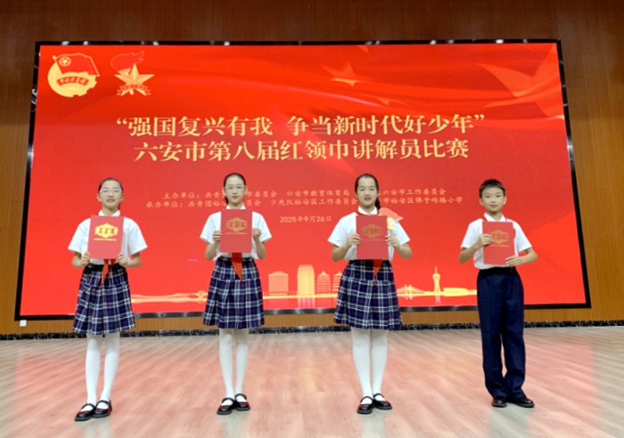 近日,“强国复兴有我 争当新时代好少年”——六安市第八届红领巾讲解员比赛圆满落幕。舒城二中七年级李婉宸、潘禹博、童屹冉、李睿骁四位同学凭借作品《我们的舒城寻宝记:一枚徽章带我们走过的神奇旅程》荣获大赛二等奖,总成绩位列全市第四名。
