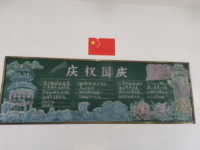 为热烈庆祝中华人民共和国成立75周年,厚植学生的爱国主义情怀,营造浓厚的校园节日氛围,近日,桃溪镇中心学校开展了以“庆国庆”为主题的黑板报评比活动。