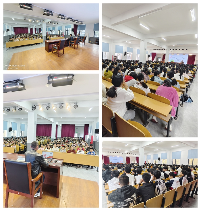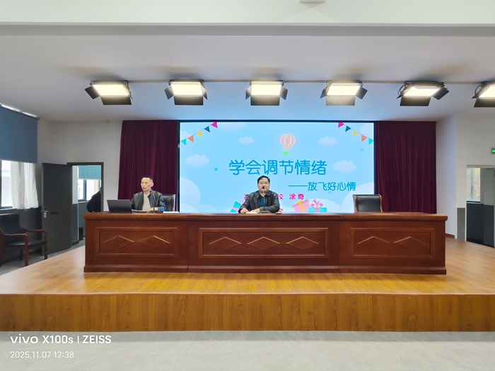 本次活动首讲由学校总务处主任涂奇担纲主讲。在“学会调节情绪,放飞好心情”主题分享中,涂奇结合学生学习生活中的实例,用通俗易懂的语言解析情绪的产生机制,通过趣味互动、案例分析等形式,向学生传授了“情绪日记法”“注意力转移法”等实用调节技巧,引导学生正视情绪、接纳情绪,学会做情绪的掌控者。随后,围绕“少年儿童自我保护”主题,涂奇聚焦校园欺凌、交通安全、防溺水、防诈骗等重点领域,通过真实案例警示,细致讲解了风险识别、应急避险、求助方式等关键内容,帮助学生提高“安全无小事”的意识,筑牢自我保护的思想防线。