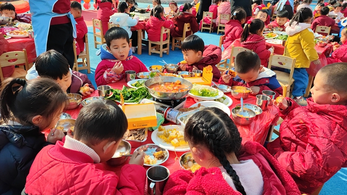辞旧迎新喜洋洋,暖意融融庆元旦。12月29日上午,城关第八幼儿园开展“童味暖锅,共赴新岁”元旦主题活动,全体师生欢聚一堂,以歌舞助兴、暖锅相伴,共度温馨欢乐的迎新时光。