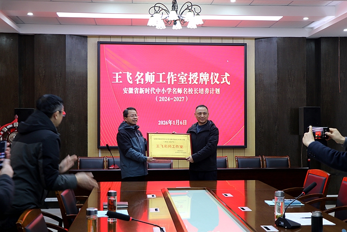 在热烈掌声中,汪泽雨为安徽省新时代王飞名师工作室授牌。这枚牌匾,承载着教育主管部门对工作室发展的殷切期望,更凝聚着广大教育同仁的共同期盼,标志着安徽省新时代王飞名师工作室正式扬帆起航、开启新程。(特约通讯员:汪永新)