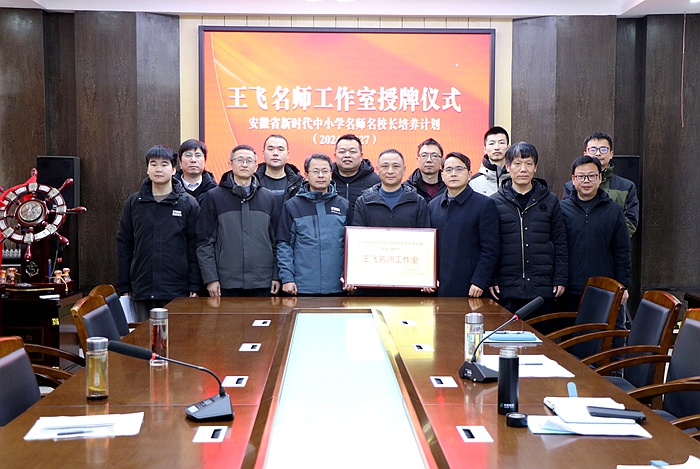 1月6日上午,安徽省新时代王飞名师工作室授牌仪式在千人桥中学春晖楼四楼会议室隆重举行。舒城县委教育工委委员、县教育局副局长汪泽雨一行出席仪式并为工作室授牌。千人桥中学校长王克胜、学校相关部门负责人及工作室成员齐聚一堂,共同见证这一重要时刻,活动由千人桥中学副校长黄金星主持。