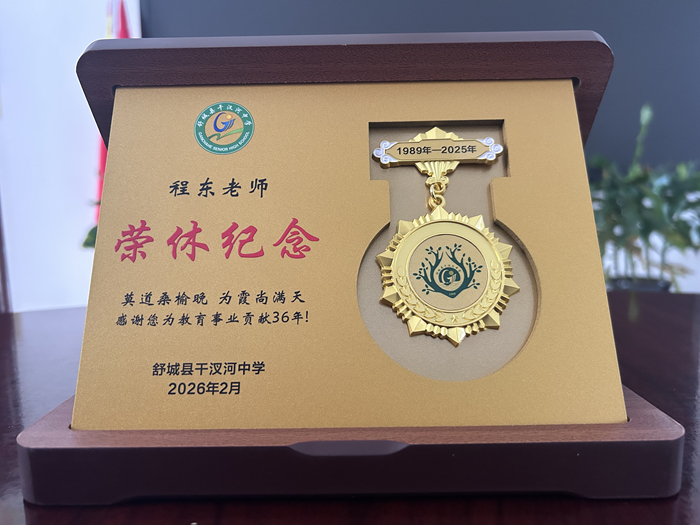 一段岁月的追忆、一份证书的留念、一束鲜花的礼遇,这是对退休教师的敬意,也是对在岗教师的激励。干汊河中学一直坚持深入贯彻落实习近平总书记关于教育的重要论述,多措并举加强教师队伍建设,不断将各项惠师举措落实落地,努力营造尊师重教的浓厚氛围。2025年度学校共有9名教师光荣退休。荣休仪式是一种仪式,更是一种赞誉、一份致敬,承载着所有教育者立德树人的初心使命,必将激励全校教师以峥嵘青春的磅礴力量,书写对党和教育事业的无限忠诚。(特约通讯员:刘曦毅)