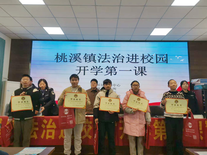 3月6日,桃溪镇综治中心联合桃溪司法所、桃溪派出所走进桃溪镇中心学校,开展“法治进校园”开学第一课主题宣讲活动,为全校师生送上一堂生动实用的法治安全教育课。