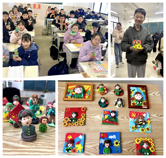 组织雷锋粘土手工活动。同学们发挥创意,用彩泥塑造雷锋形象、制作爱心、志愿标志等作品,在动手实践中致敬榜样,感受助人为乐的意义。