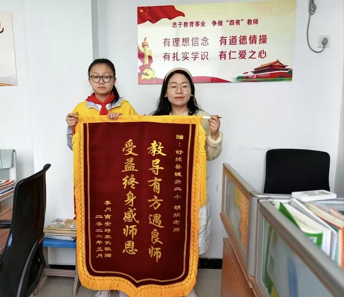 ——城关二小教育集团龙舒路校区胡娟老师获赠锦旗