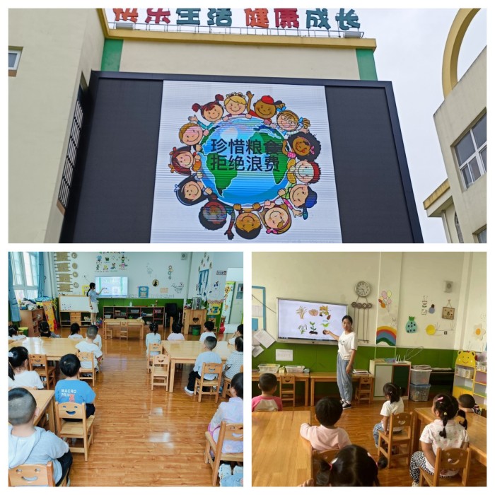 活动中,幼儿园以节俭用餐、文明用餐为行动指南,利用LED屏幕滚动播放节约粮食图片和标语、班级微信群等形式宣传文明就餐活动的重要意义;各班教师在班级开展了形式多样的主题教育活动,通过讲故事、观看视频、谈话等形式,把餐桌礼仪及节约粮食教育渗透到活动中来,在班级营造节约氛围,积极倡导“光盘”行动。