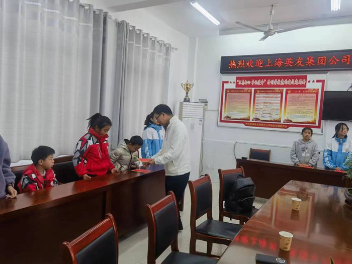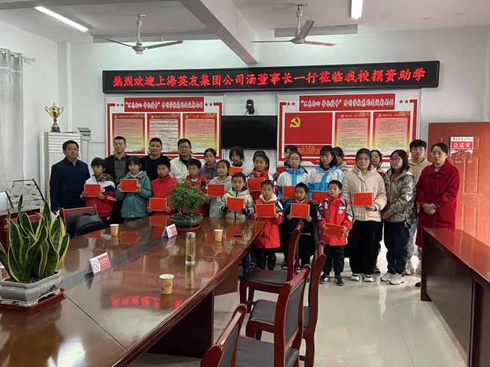 汤英友等企业家是土生土长的五显人,在上海等地创业有成,但他们没有忘记家乡父老,情系家乡教育。从2020年以来连续四年为五显镇中心学校的贫困学子捐赠助学、奉献爱心。捐赠仪式上,中心校校长黄自要代表学校对企业家们的到来表示热烈欢迎,对他们的爱心捐赠表示衷心感谢,希望同学们要懂得感恩,把企业家的爱心化为学习的动力,刻苦学习。镇党委副书记、镇长黄玉娟代表镇党委政府感谢上海英友集团公司汤英友董事长一行长期以来对家乡学子的关心帮助,希望受助学生要好好学习,立志成才,报效祖国,报答家乡,将爱心传递。汤英友董事长代表五显籍的企业家发言,他表示会一如既往地关注家乡的贫困学子,支持家乡的教育事业,捐资助学活动将持续下去,个别学生如遇特殊困难,也可直接单线联系,他们会慷慨解囊伸出援手。随后,汤总一行为五显镇中心学校(含小学部)的20名贫困学生每人发放2000元助学金。