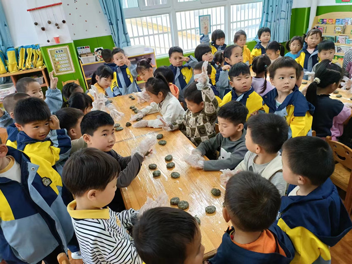 张母桥镇中心幼儿园开展清明节制作蒿子粑粑活动