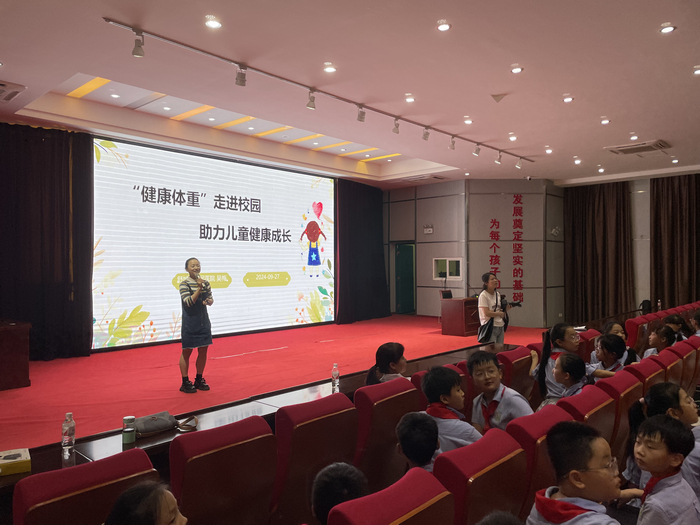 活动中,县人民医院吴梅医生重点向师生介绍了健康体重的科普知识,她通过亲身事例向同学们宣传健康饮食和科学锻炼的重要性,引导学生养成良好的生活和运动习惯,保持身体健康状态。