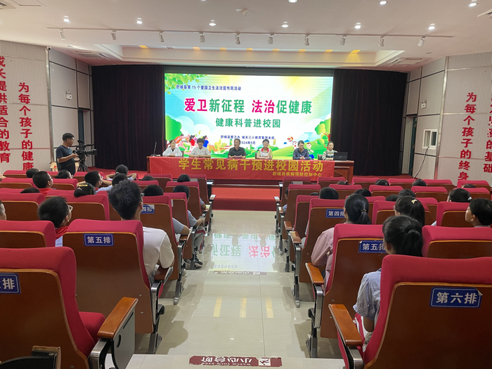 为大力普及宣传健康知识,提升学校学生的健康素养水平,倡导积极健康的生活方式,9月27日,城关三小教育集团本部联合县爱卫办、县疾病预防控制中心、县人民医院开展第15个爱国卫生法治宣传周健康科普进校园活动,该校五年级450余名师生参加活动。
