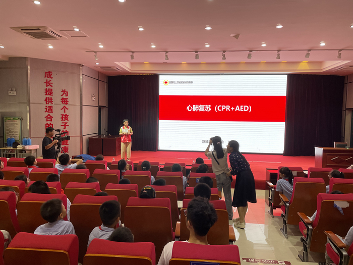 随后,县红十字会万德年为师生科普了应急救护及心肺复苏常识,她通过现场演示、游戏互动、师生模拟等方式,向师生演示介绍了心肺复苏及海姆立克急救法相关知识,提高了师生在紧急情况下的自救和互救能力。