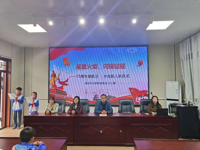 为迎接第75个中国少年先锋队建队日,10月14日,城冲中心学校关工委联合少工委举行了新队员入队仪式。