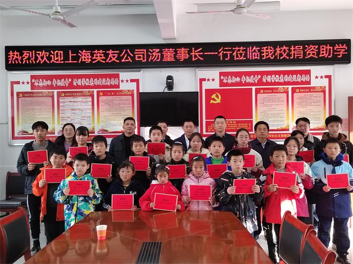 汤英友等企业家是土生土长的五显人,在上海等地创业有成,但他们没有忘记家乡父老,情系家乡教育。自2020年以来连续五年为五显镇中心学校的贫困学子奉献爱心。捐赠仪式上,五显镇中心学校党总支书记黄自要对参与捐赠的爱心企业上海英友集团表示衷心的感谢和崇高的敬意。他强调,爱心企业家们的善举不仅体现了他们对家乡的眷恋与回馈,更凸显出对家乡教育事业的重视与支持。希望受助学生懂得感恩,树立正确的人生观,刻苦学习,用乐观和坚毅书写属于自己的精彩人生,为社会传递更多正能量,相信此次活动能够激励该校更好地提升学校教学质量。汤英友代表五显籍的企业家发言,他表示会一如既往地关注家乡的贫困学子,支持家乡的教育事业,个别学生如遇特殊困难,他们将会一对一进行帮扶。汤总鼓励学生要好好学习,励志成才。随后,汤总一行为五显镇中心学校(含小学部)的20名贫困学生每人发放助学金2000元。