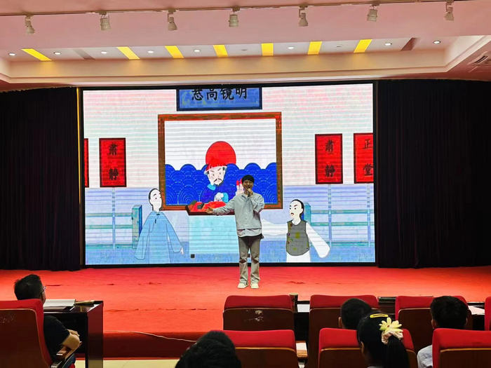 活动在主持人邓超演唱的歌曲《六尺巷》中拉开序幕。邓超用悠扬的歌声,传递出 “让他三尺又何妨” 的和谐礼让精神,邓超以沉稳大气的台风,将传统美德融入音符之中,展现了师生传承文化的真挚情怀,也为学校参演节目拉开精彩序幕。